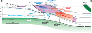 Cette prouesse est réalisée en reconstruisant le signal géophysique des roches d'ages Miocène (~20 Million d'années) qui affleurent aujourd'hui au sud du plateau Tibétain. Ces roches ont subi un chemin pression-température lors de leur exhumation depuis de le cœur de l'orogène. Ce chemin correspond remarquablement au signal géophysique qui intrigue la communauté depuis plus 20 ans: Il s'agit d'une production gigantesque de magma au cœur de la chaine.