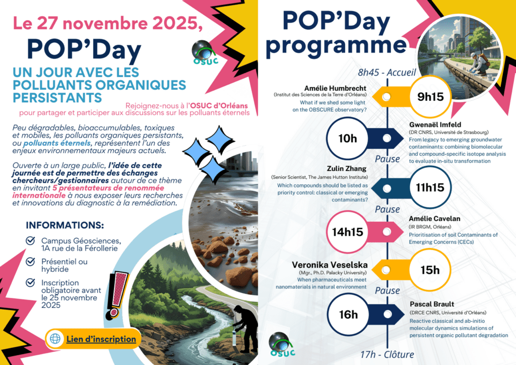 Peu dégradables, bioaccumulables, toxiques et mobiles, les polluants organiques persistants, ou polluants éternels, représentent l’un des enjeux environnementaux majeurs actuels. Ouverte à un large public, l’idée de cette journée est de permettre des échanges chercheurs/gestionnaires autour de ce thème en invitant 5 présentateurs de renommée internationale à nous exposer leurs recherches et innovations du diagnostic à la remédiation.
